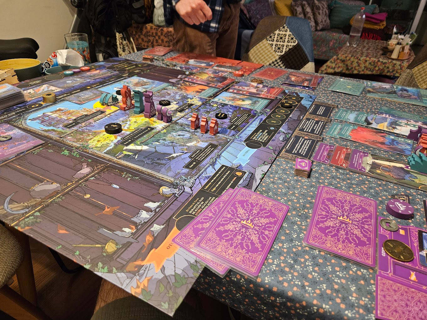 Todo esto envuelto en una serie de mecánicas que te permiten activar habilidades que cambian las reglas del juego en cada fase, y en un arte que llena de detalles el tablero y las cartas, el juego hace uso de un espacio titánico en la mesa solo para lucir el arte de las cartas.