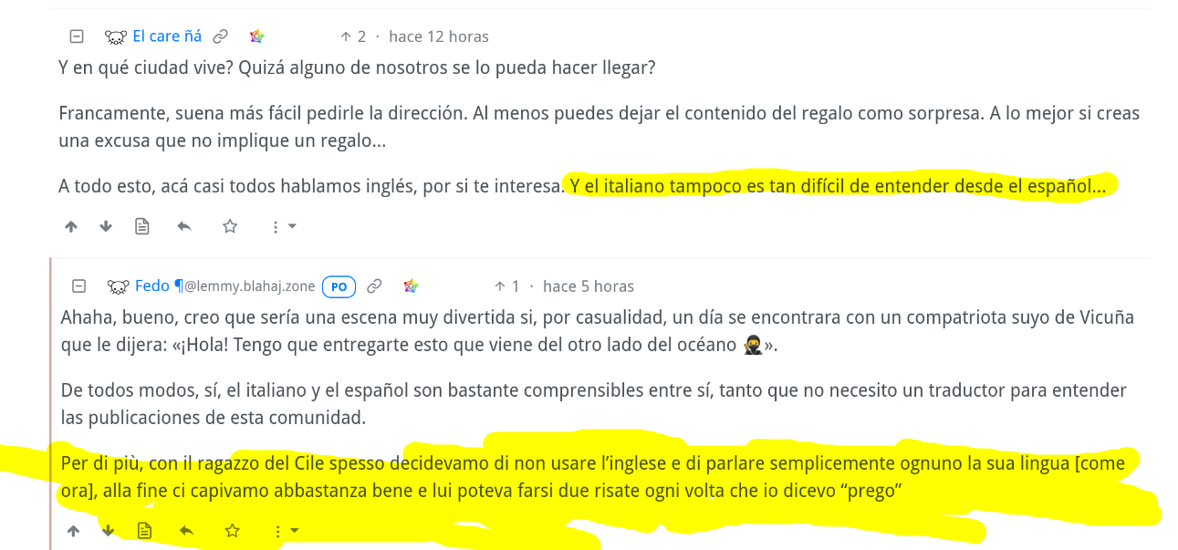 A lo mejor Duolingo sí me ha enseñado algo de italiano, porque entiendo el 90% de lo que escribió ahí. Lo único que no entiendo es eso de “poteva farsi [dos] risate…” Algo le pasaba al chileno cada vez que el italiano le decía “prego.”